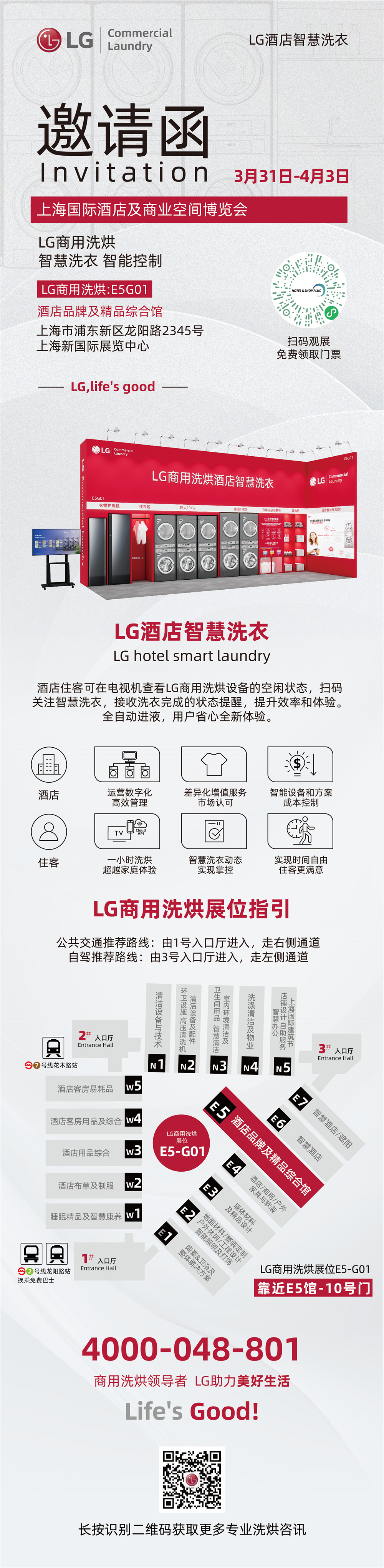 我们深知,每一次洗涤都关乎信任,每一台设备都承载着运营者对完美的追求。在此,LG商用洗烘诚挚邀请您莅临 E5G01 展位,亲身体验前沿科技带来的高效与便捷。